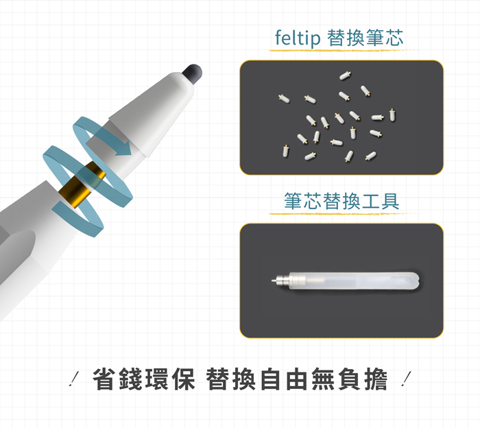內容物:紙感筆頭 1 組 4 入、補充筆芯 1 組共 20 入、替換工具組