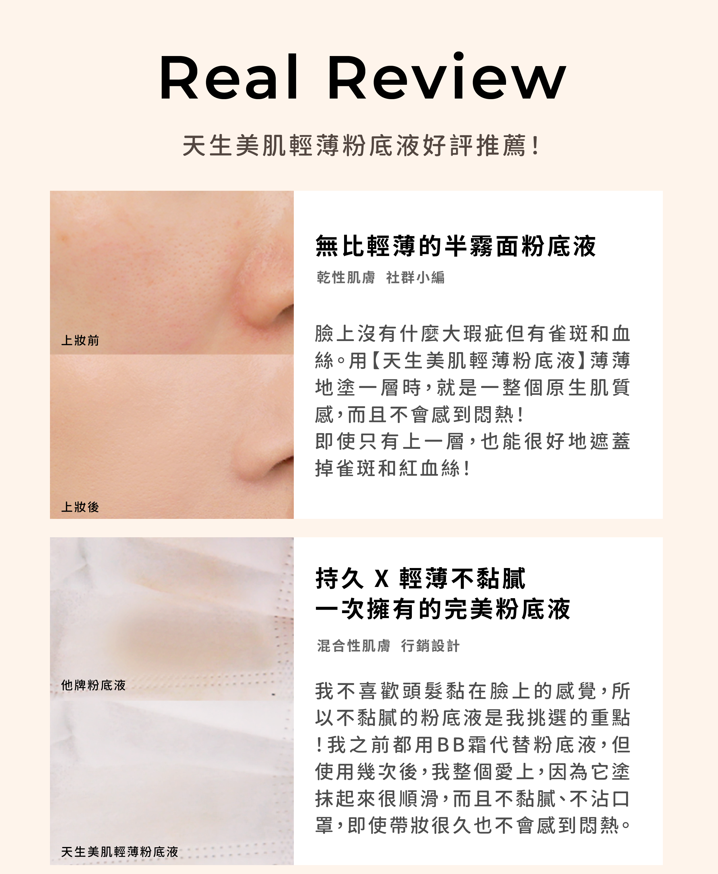 ⛧ 延展性佳,多層堆疊遮瑕不卡粉