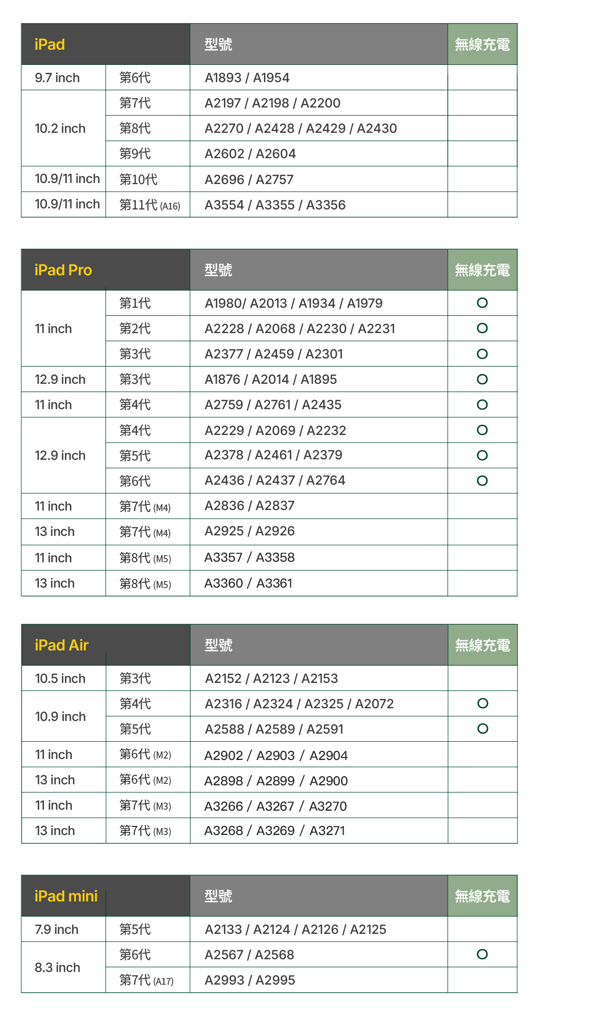 ※ 購買前請先確認 iPad 型號適用表