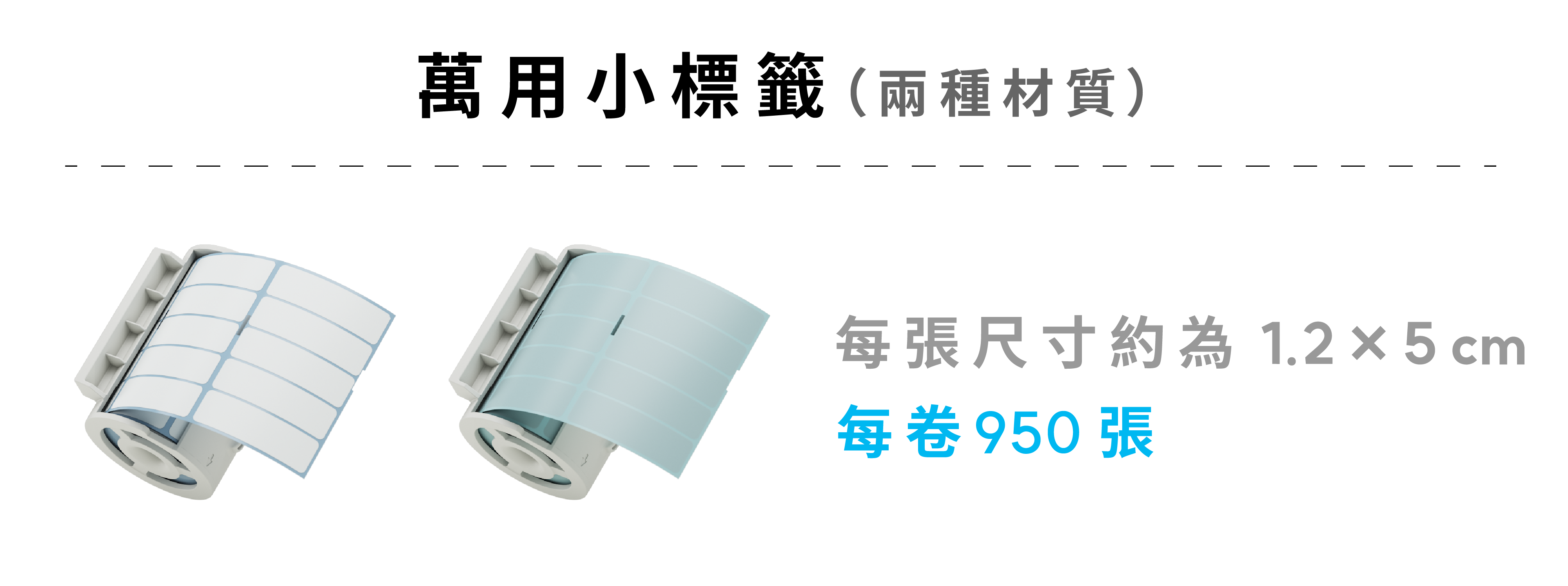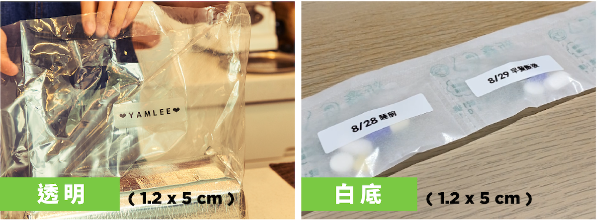 萬用收納小標籤共有「白底、透明」 2 種材質,