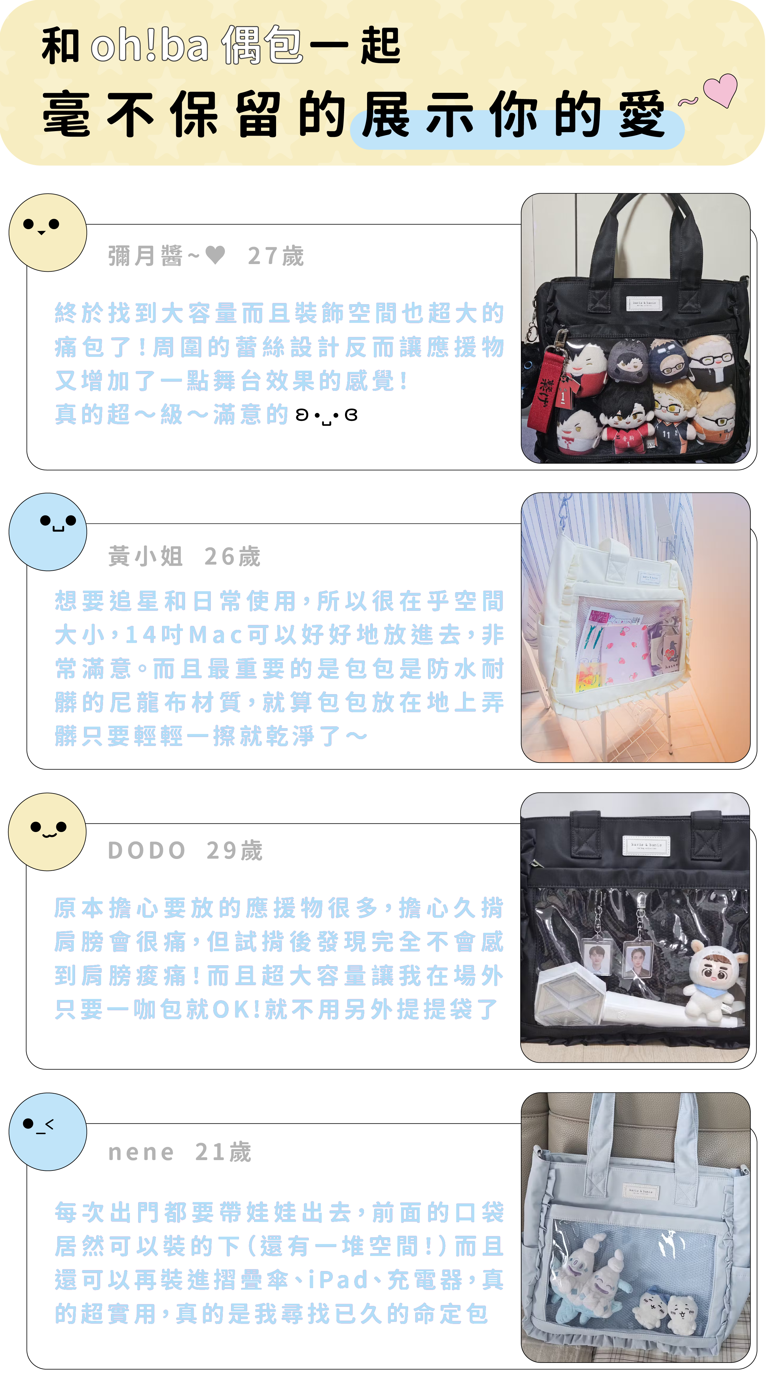 相信大家包包只想放入偶像滿滿的愛,所以為了減輕大家的負擔,製作包包時,也考慮到重量,整體僅520g!比行動電源還輕盈,完全不會成為負擔