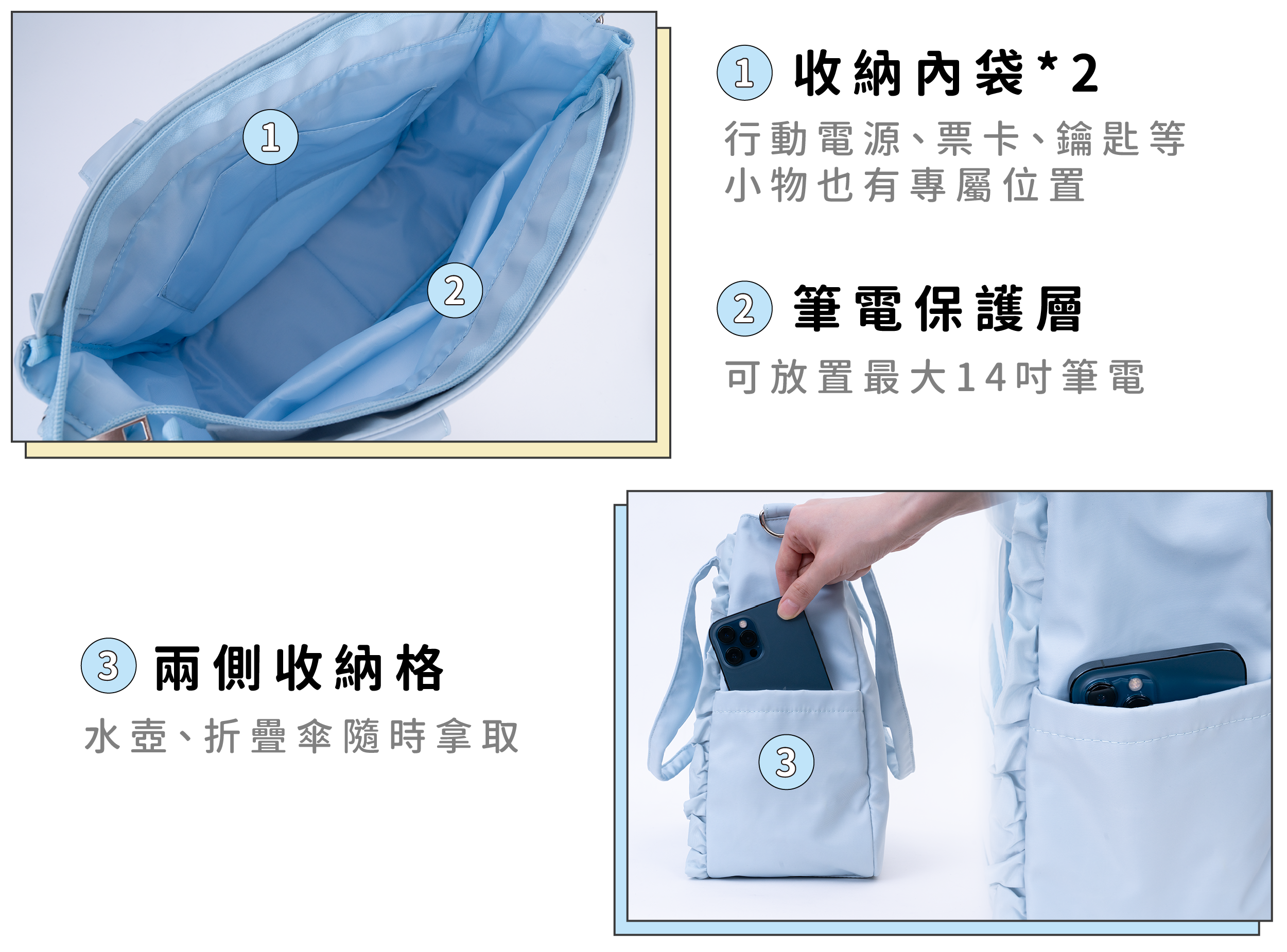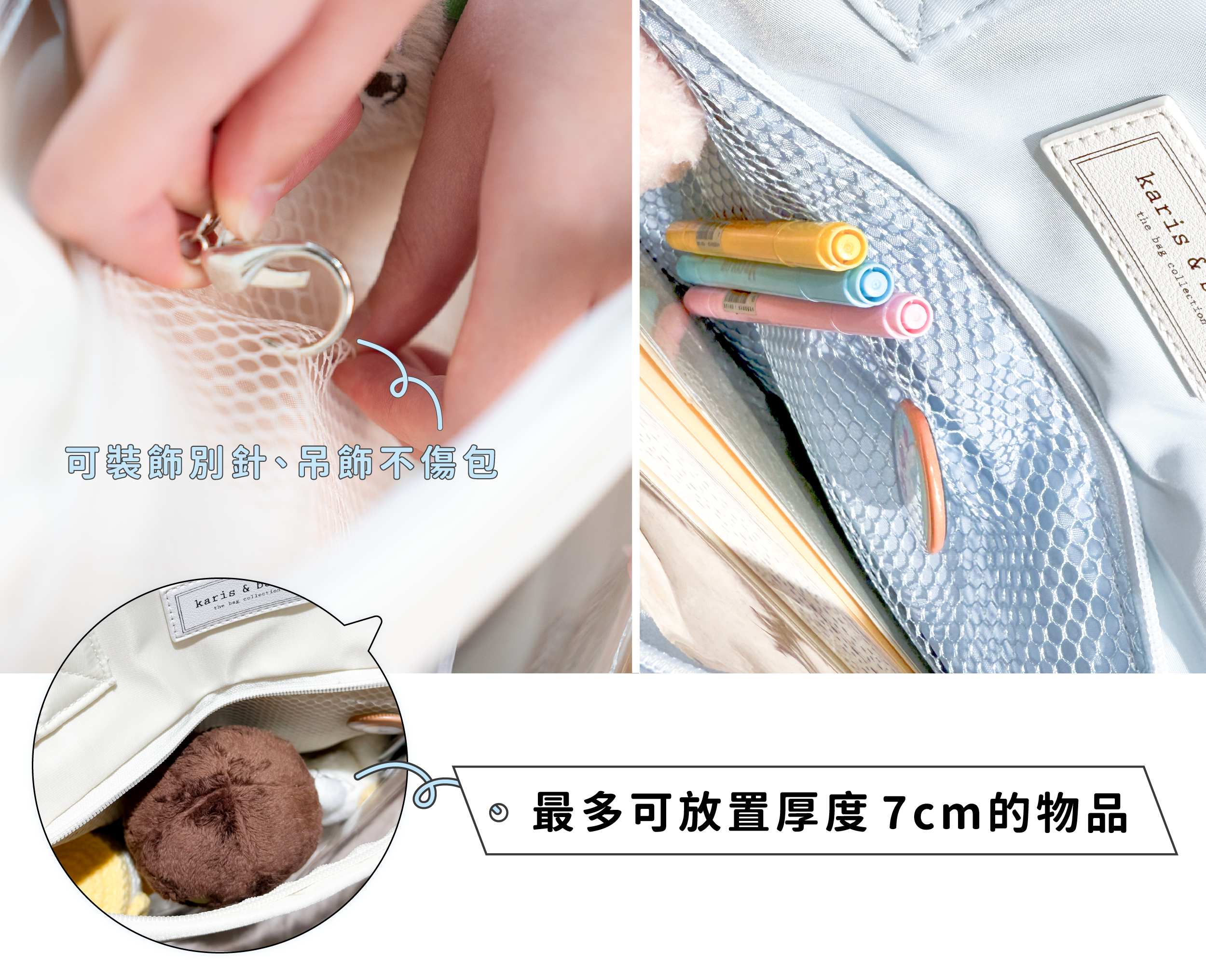 我們不馬虎的使用與國際精品PRADA同等級的高級尼龍防水帆布來製作,擁有抗污防髒的特性,無論是不小心被飲料灑到、或是突如其來的雷陣雨,都不用擔心物品們遭殃!(๑✧∀✧๑)