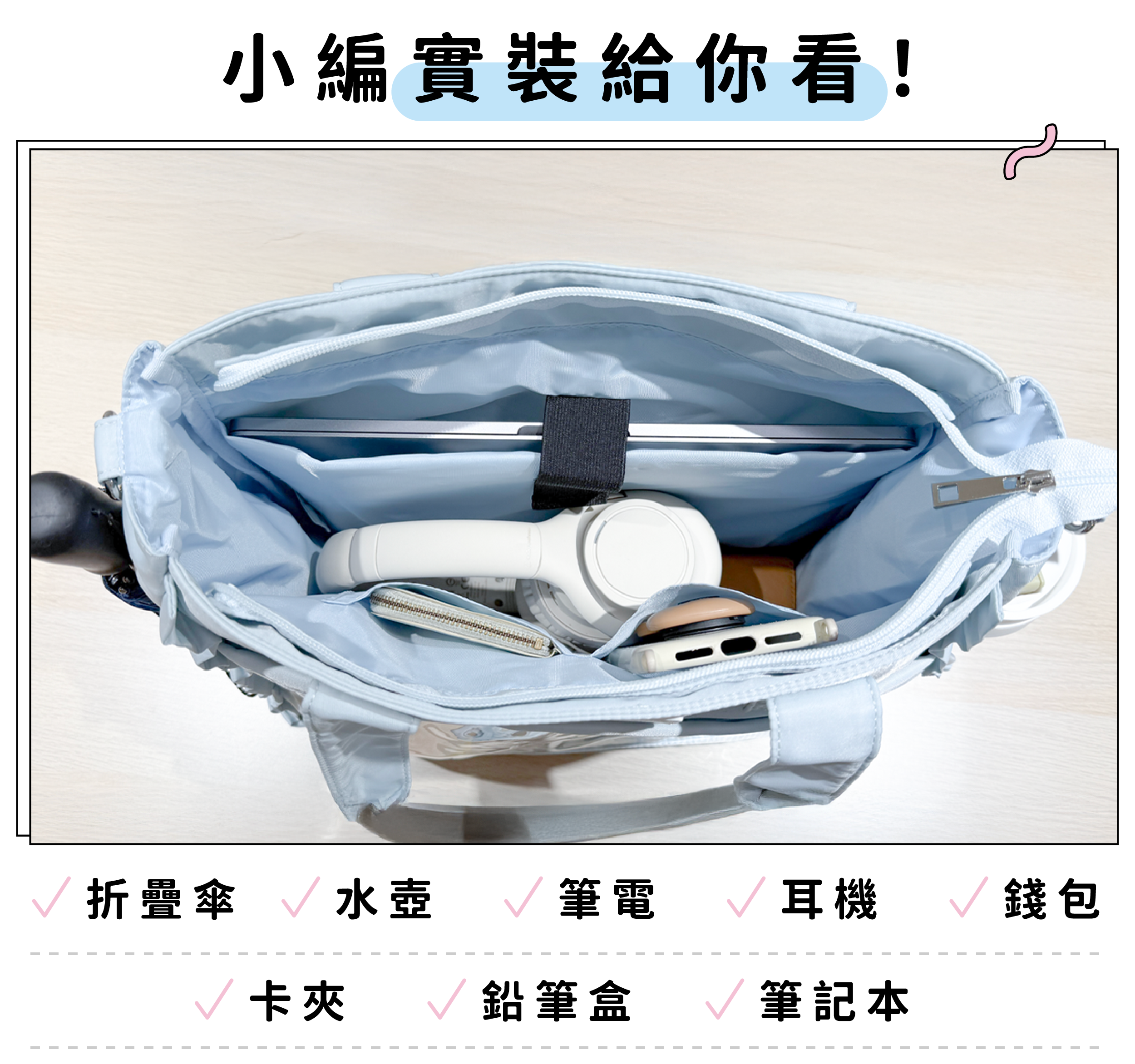 我們在設計上特別用了巧思,採用梯形結構,只要把內部撐開包包就能保持完整,不會因為柔軟而扁塌壓到裡面的東西,就算從高處摔下來也不怕變形哦!(・ω・)b