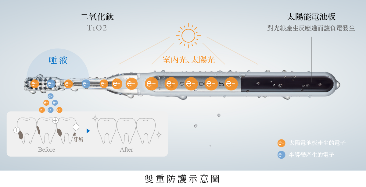 除了,可以吸收室內光源即可產生負電子外,太陽能電池板相較電動牙刷來說,也不需要更換電池或者另外充電,環保節能又方便。
