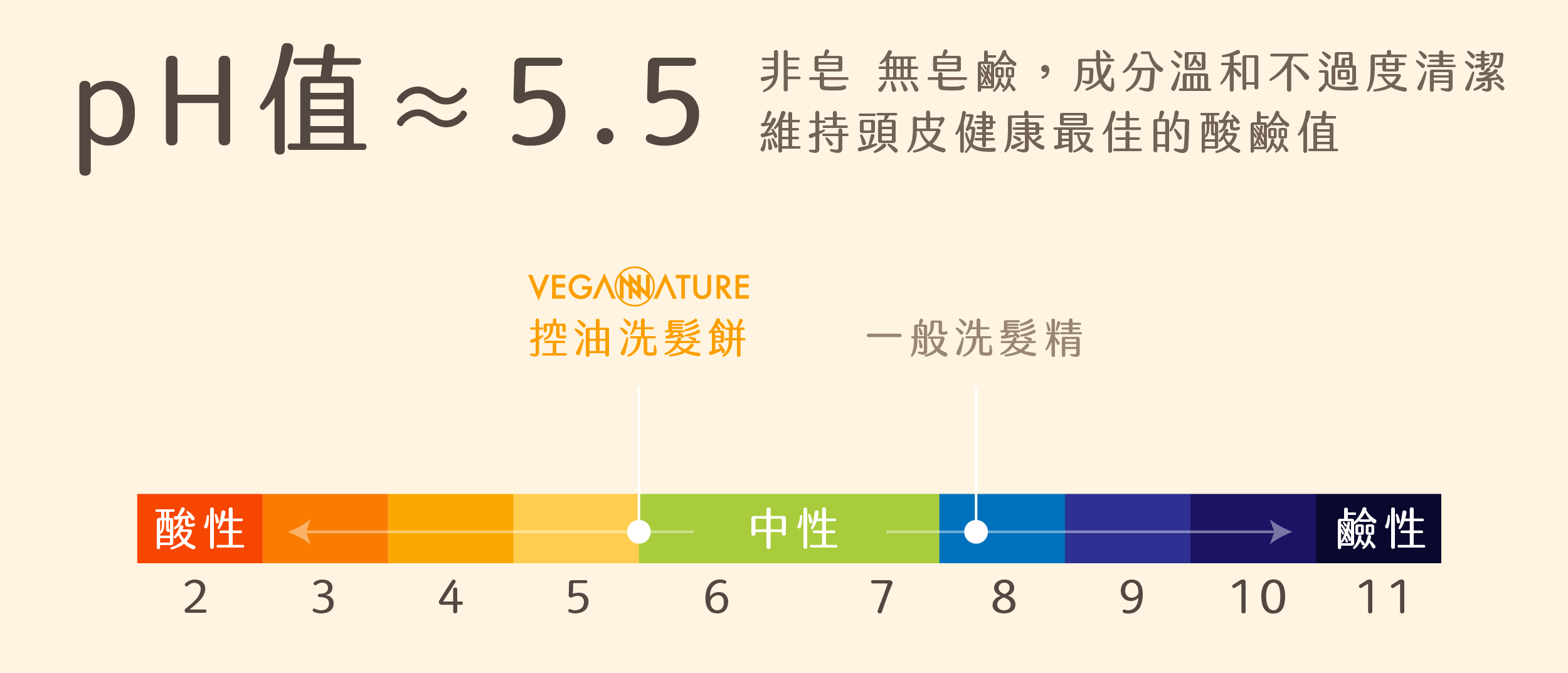 ⸨ Vegan Nature 控油洗髮餅 ⸩ pH值5.5 ,是最接近人體皮膚的理想平衡值,能溫和清潔同時守住頭皮健康!