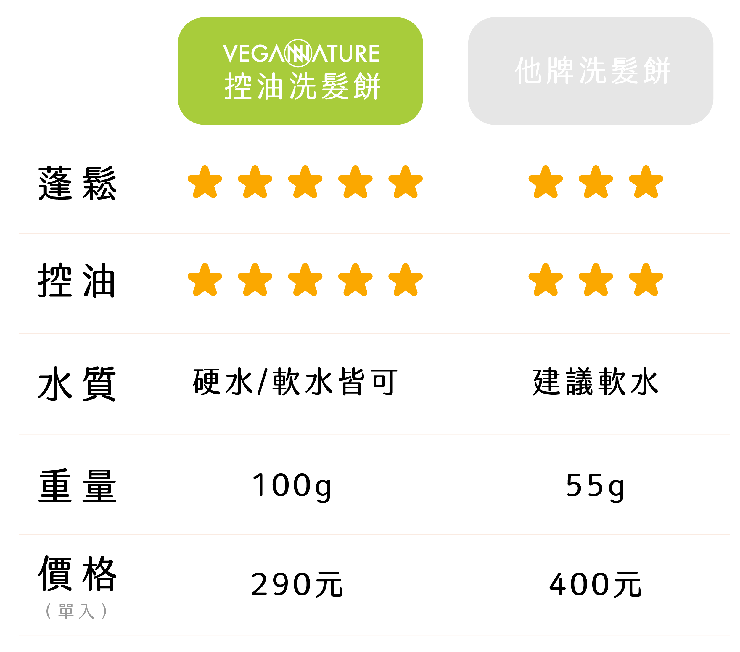 Vegan Nature 控油洗髮餅單顆(100g)約可使用 1.5~2 個月,使用次數相當於一瓶 洗髮精,每天洗頭一天不到 NT$6,就能享受高效控油與溫和舒緩的頭皮spa洗感,搭配天然香氛與保濕成分,讓頭皮每天都能舒服又安心。